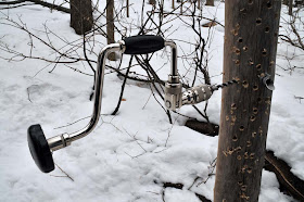 You can try your hand at manually drilling a post to see how the holes are made and the tree is tapped