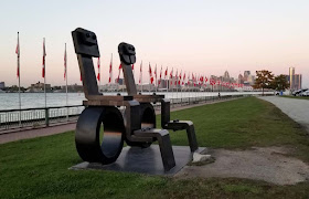 Built in the 1920s, the steel bridge's four lanes need to be supplemented and so Canada plans to build a new bridge, to be called the Gordie Howe Bridge, and now, so do the owners of the Ambassador Bridge. There will be bridges everywhere (and don't forget about the Detroit-Windsor Tunnel). The Detroit International Bridge Company plans to twin their bridge with a six-lane structure right beside the current one, keeping the original for overflow traffic - they have bought a lot of houses on the Windsor side and boarded them up or demolished them for the bridge construction.